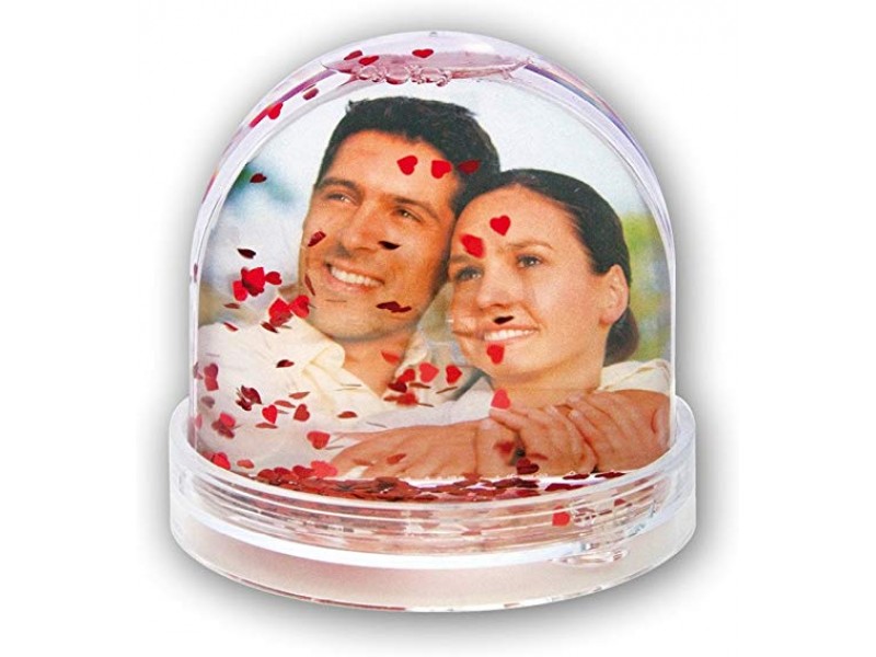 GLOBO DE ÁGUA COM CORAÇÕES VERMELHOS NO INTERIOR. LEVA UMA FOTO TAMANHO 6.5X6.2