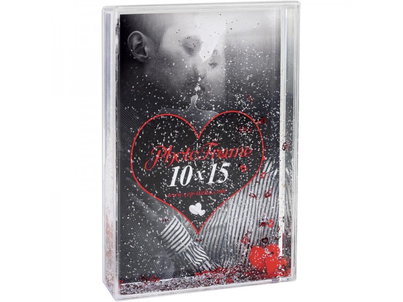 MOLDURA DE ÁGUA 10X15 COM UM CORAÇÃO 3D VERMELHO NO INTERIOR.